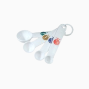 Bright colors help differentiate the 4 measuring spoons. Spoons are made of sturdy plastic that is dishwasher safe.