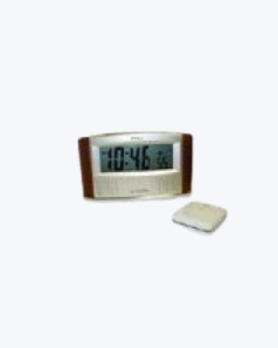 Clock, alarm, indoor and outdoor temperatures displayed and read in human voice